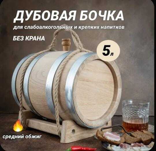 Бочка дубовая 5л Средний обжиг