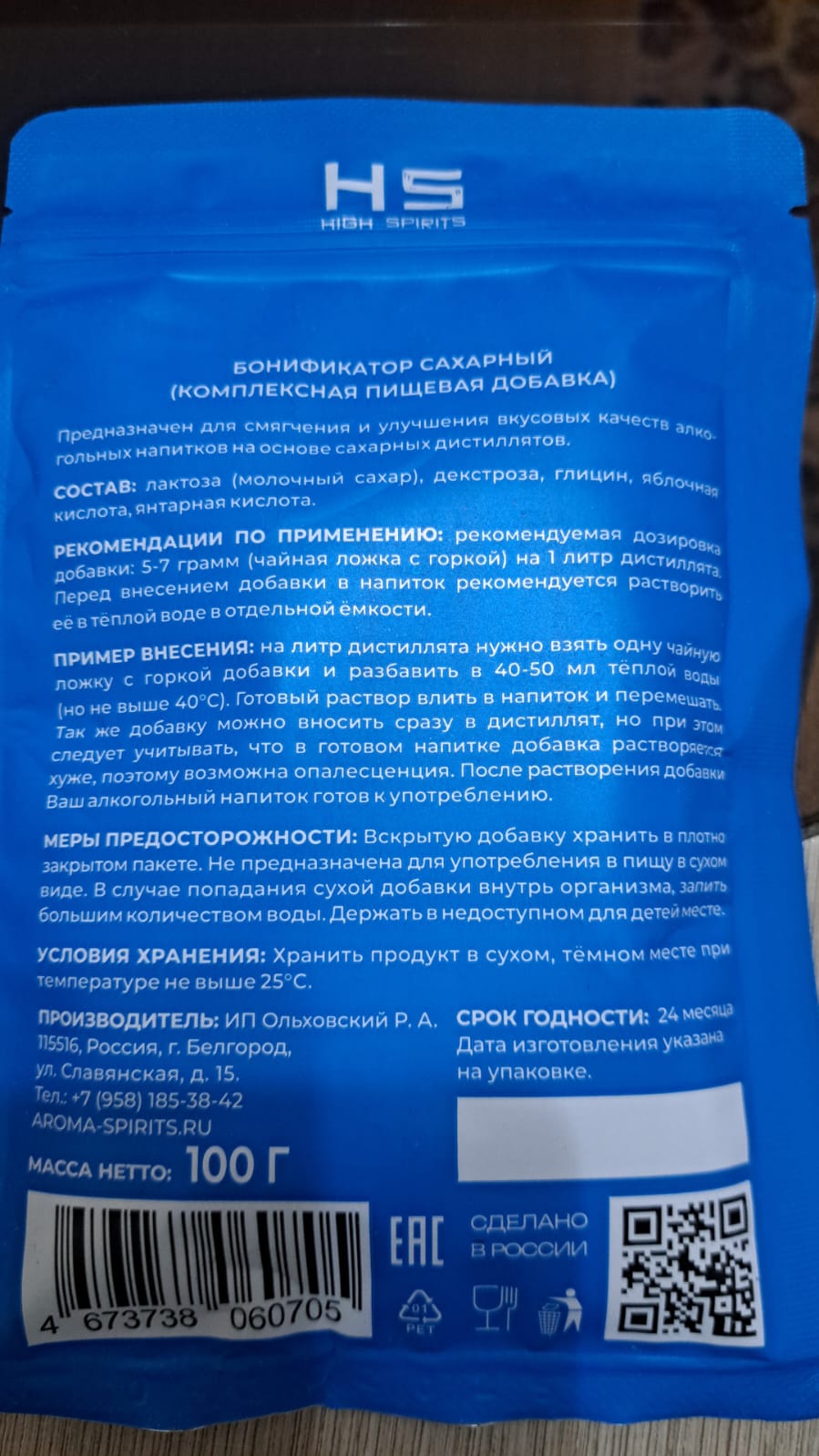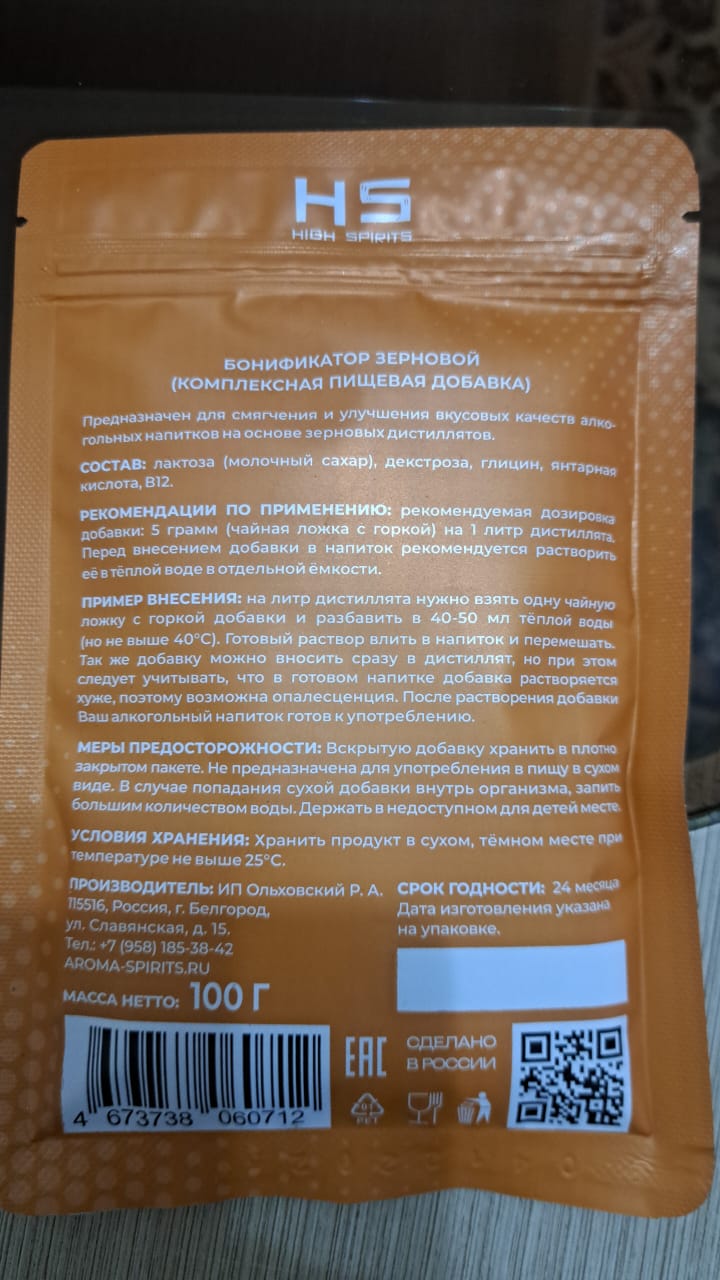 Бонификатор High Spirits для сахарных, фруктовых, зерновых дистиллятов, 100 гр